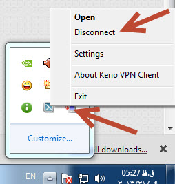 توجه برای قطع اتصال آیکون کریو موجود در منوبار گوشه ویندوز را زده و روی Disconnect بزنید